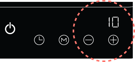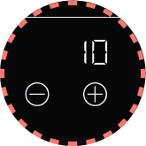 Touch and hold "-" and "+" to jump to max power level 10