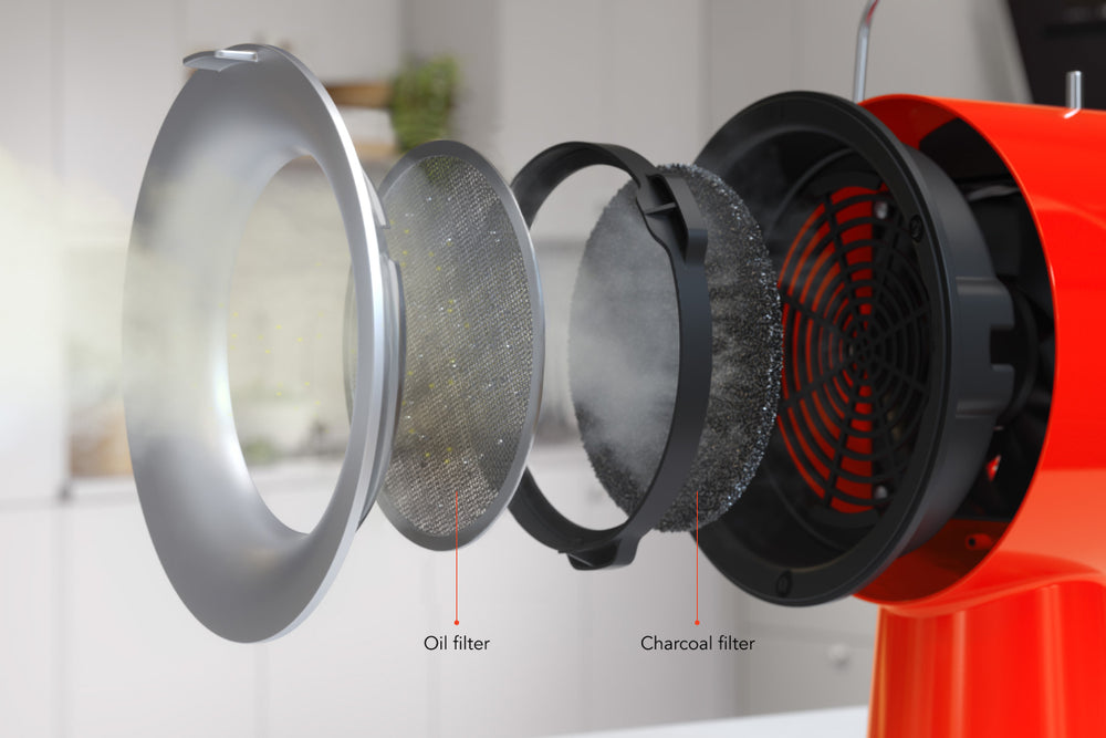 Charcoal Filter purifies air & trap toxins. Using activated charcoal filters the AirHood effectively remove toxins, and absorb impurities as cooking fumes pass through.