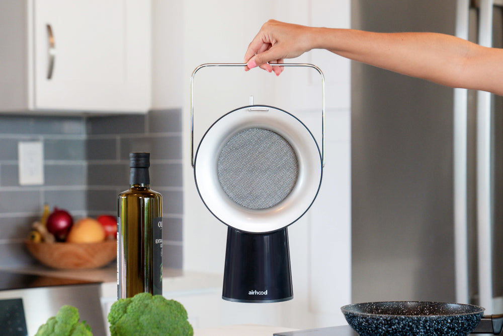 The AirHood is a portable kitchen air cleaner that was designed as an innovative alternative to a range hood. It functions as a portable range hood for use on countertops or tabletops, near the cooking area. It delivers ductless ventilation and air filtration in kitchens where a conventional built-in range hood is ineffective or may not be feasible to install. Such a kitchen exhaust device is ideal for apartments, studios, small kitchens, or rentals.