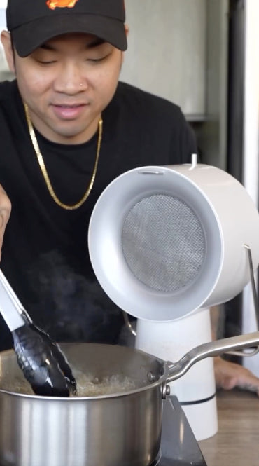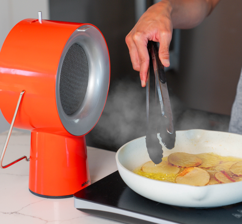 AirHood's space-saving design ensures a clutter-free kitchen. Easily move it from your kitchen to the table, ensuring purified air wherever you cook.