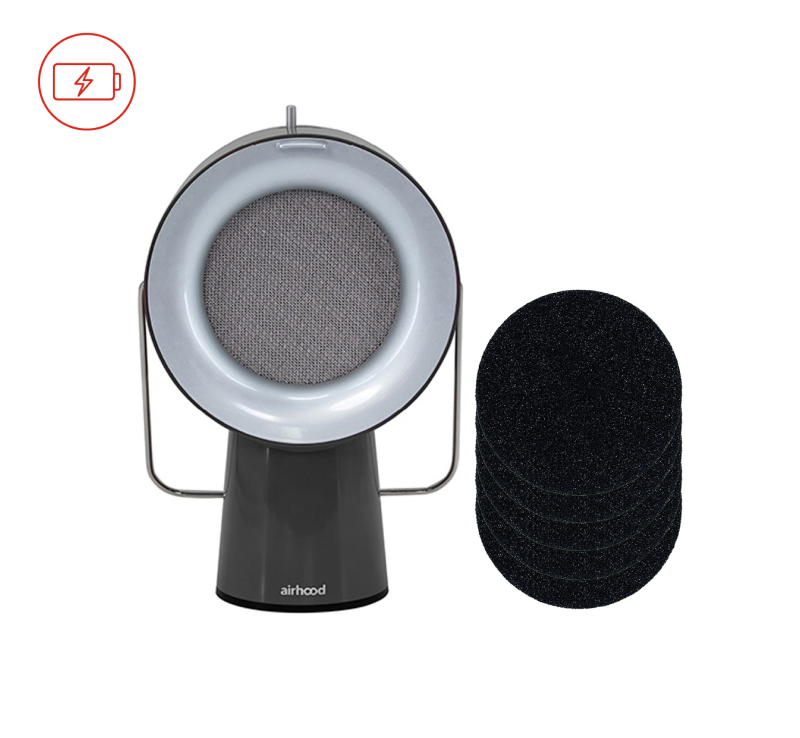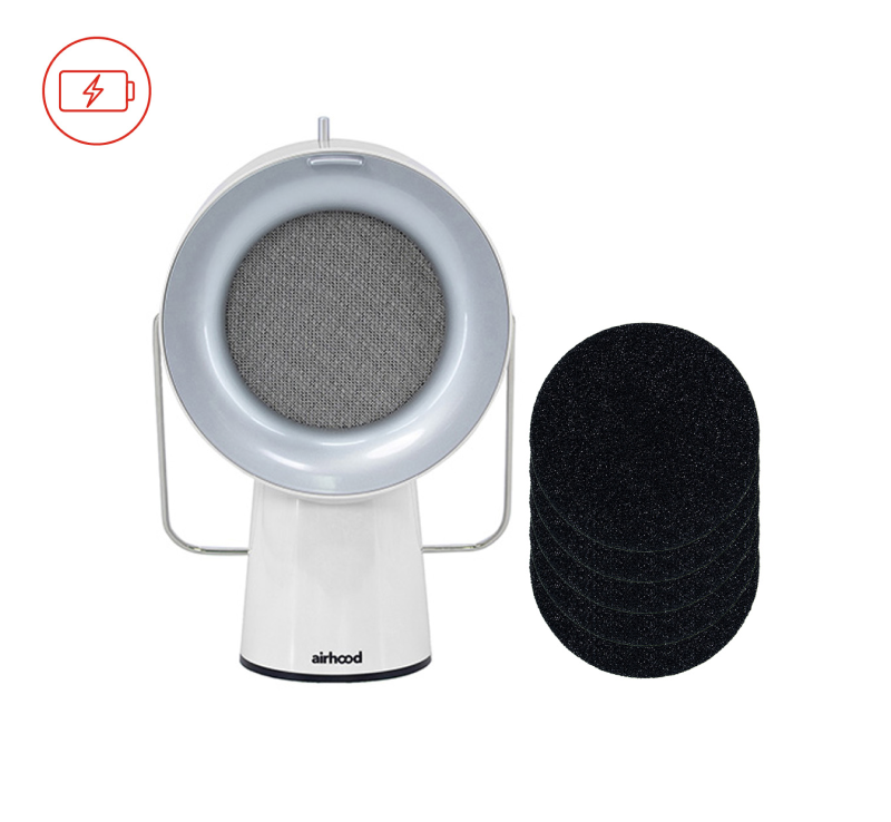 The AirHood is a portable kitchen air cleaner that was designed as an innovative alternative to a range hood. It functions as a portable range hood for use on countertops or tabletops, near the cooking area. It delivers ductless ventilation and air filtration in kitchens where a conventional built-in range hood is ineffective or may not be feasible to install. Such a kitchen exhaust device is ideal for apartments, studios, small kitchens, or rentals.